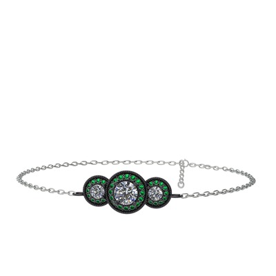Pırlanta ve yeşil kuvars 925 ayar siyah rodyum kaplama gümüş bilezik (1.5 karat, 17 cm beyaz altın rolo zincir)