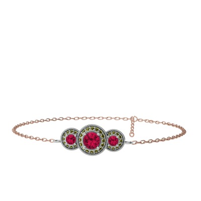 Rodolit garnet ve peridot 8 ayar beyaz altın bilezik (17 cm rose altın rolo zincir)