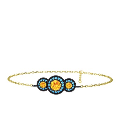 Sitrin ve akuamarin 925 ayar siyah rodyum kaplama gümüş bilezik (17 cm altın rolo zincir)