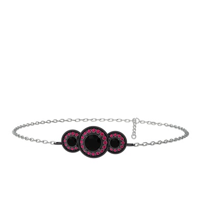 Siyah zirkon ve rodolit garnet 925 ayar siyah rodyum kaplama gümüş bilezik (17 cm beyaz altın rolo zincir)