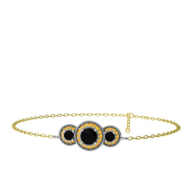 Siyah zirkon ve sitrin 18 ayar beyaz altın bilezik (17 cm altın rolo zincir)