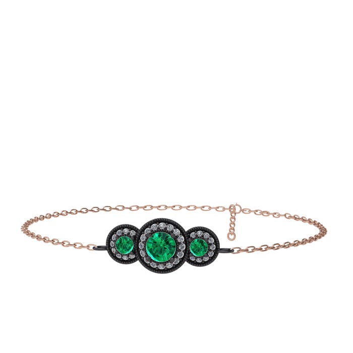 Yeşil kuvars ve beyaz zirkon 925 ayar siyah rodyum kaplama gümüş bilezik (17 cm rose altın rolo zincir)