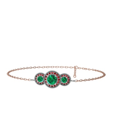 Yeşil kuvars ve garnet 14 ayar beyaz altın bilezik (17 cm gümüş rolo zincir)