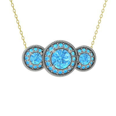 Akuamarin 14 ayar beyaz altın kolye (40 cm altın rolo zincir)