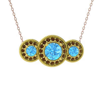 Akuamarin ve dumanlı kuvars 14 ayar altın kolye (40 cm rose altın rolo zincir)
