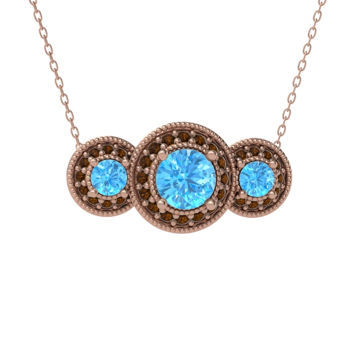 Akuamarin ve dumanlı kuvars 925 ayar rose altın kaplama gümüş kolye (40 cm gümüş rolo zincir)