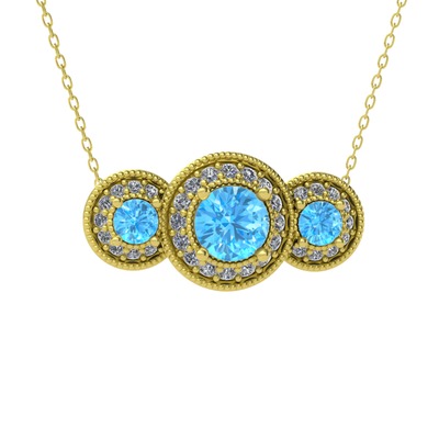 Akuamarin ve pırlanta 925 ayar altın kaplama gümüş kolye (0.462 karat, 40 cm altın rolo zincir)