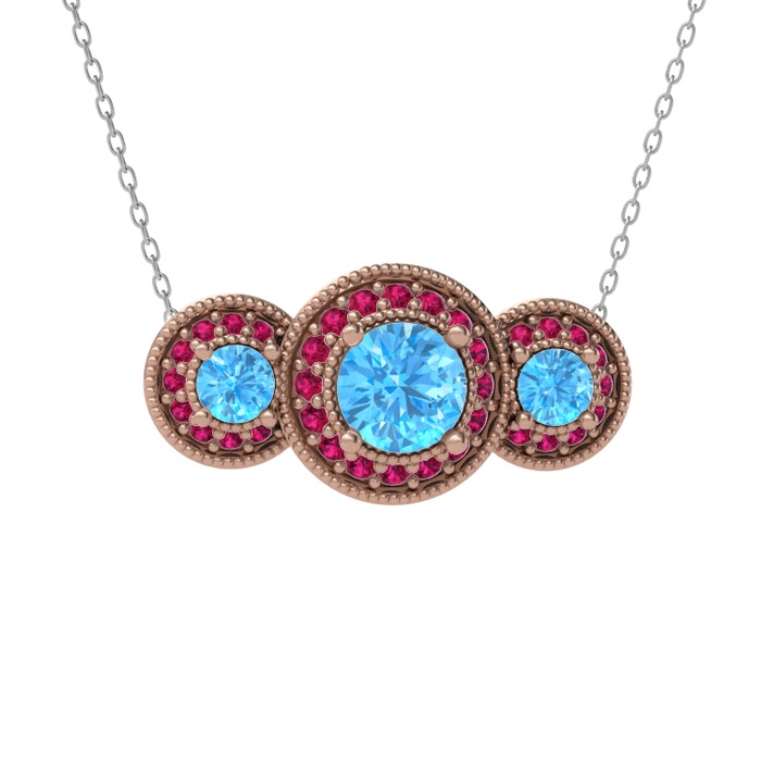 Akuamarin ve rodolit garnet 18 ayar rose altın kolye (40 cm beyaz altın rolo zincir)