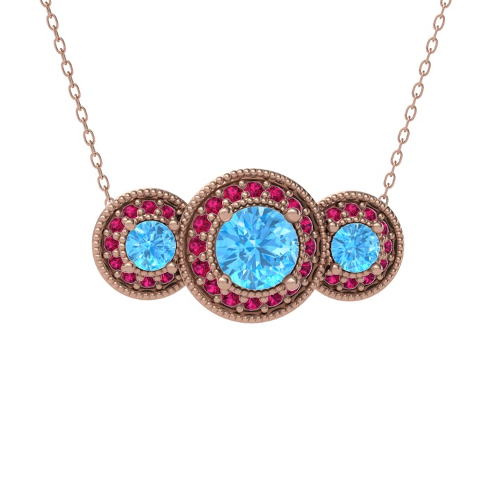 Akuamarin ve rodolit garnet 925 ayar rose altın kaplama gümüş kolye (40 cm rose altın rolo zincir)
