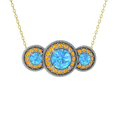 Akuamarin ve sitrin 14 ayar beyaz altın kolye (40 cm altın rolo zincir)