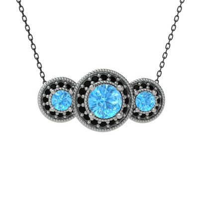 Akuamarin ve siyah zirkon 18 ayar beyaz altın kolye (40 cm gümüş rolo zincir)