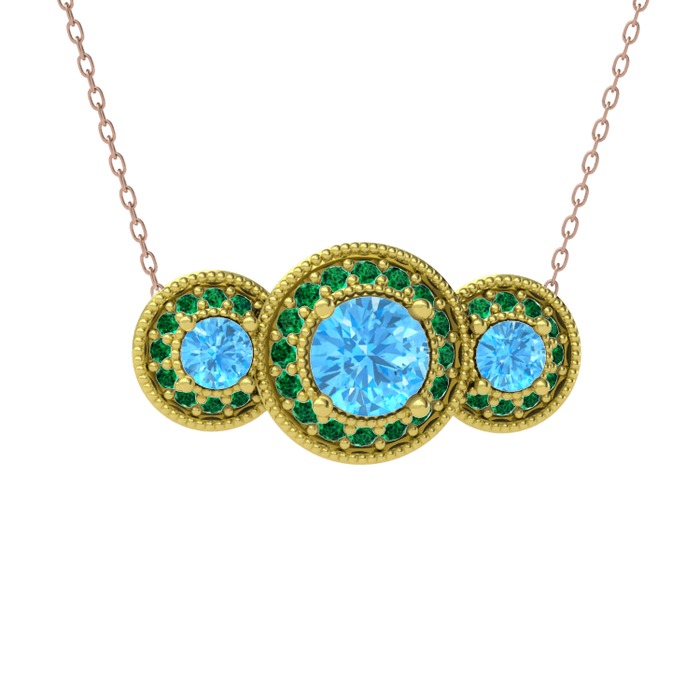 Akuamarin ve yeşil kuvars 14 ayar altın kolye (40 cm rose altın rolo zincir)