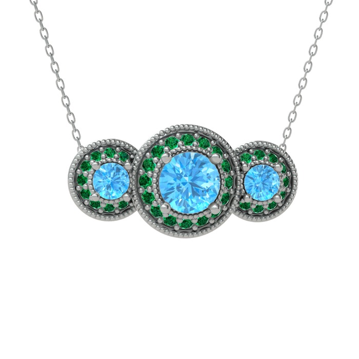 Akuamarin ve yeşil kuvars 14 ayar beyaz altın kolye (40 cm beyaz altın rolo zincir)