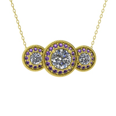 Beyaz zirkon ve ametist 14 ayar altın kolye (40 cm gümüş rolo zincir)