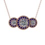 Beyaz zirkon ve lab safir 925 ayar rose altın kaplama gümüş kolye (40 cm rose altın rolo zincir)