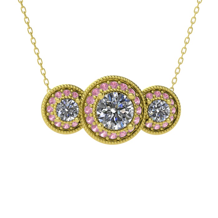 Beyaz zirkon ve pembe kuvars 8 ayar altın kolye (40 cm altın rolo zincir)