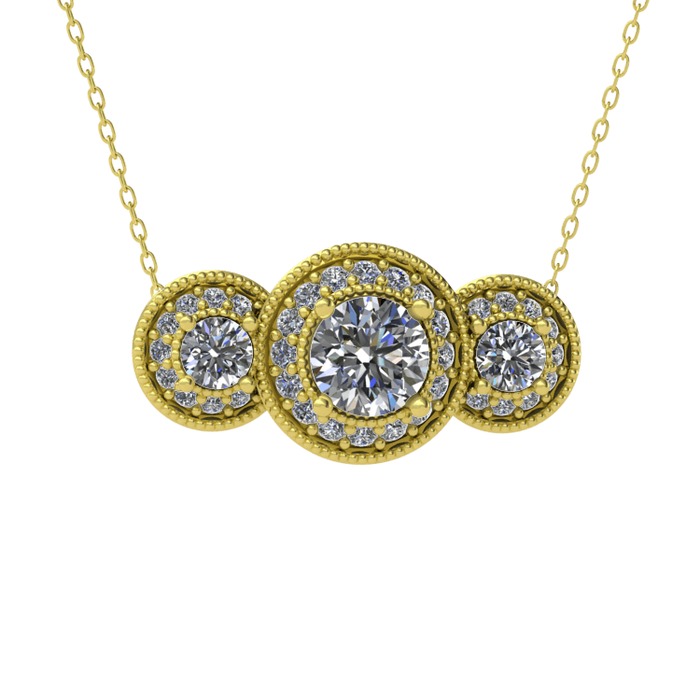 Beyaz zirkon ve pırlanta 925 ayar altın kaplama gümüş kolye (0.462 karat, 40 cm gümüş rolo zincir)