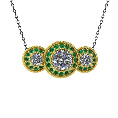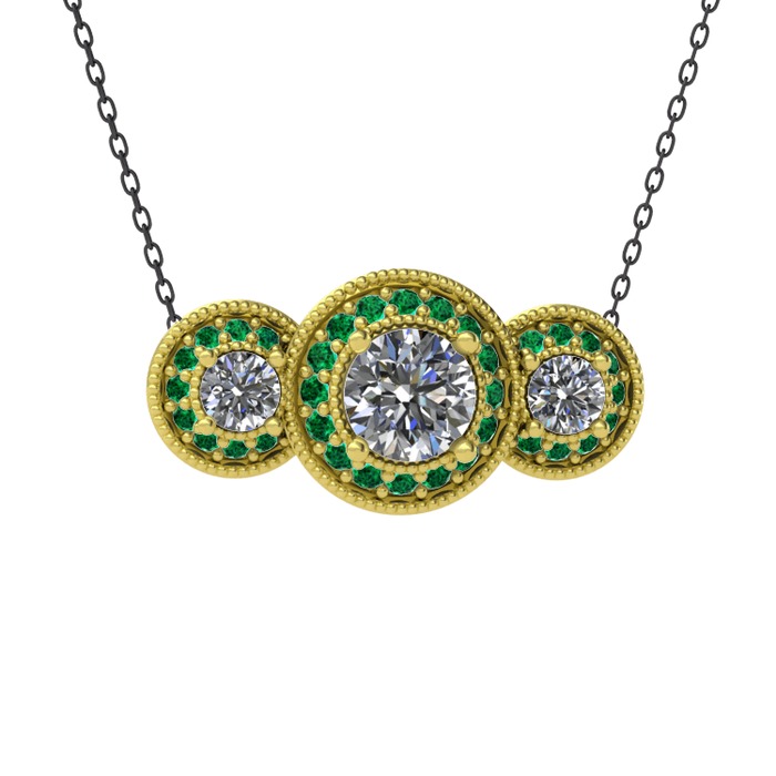 Beyaz zirkon ve yeşil kuvars 8 ayar altın kolye (40 cm gümüş rolo zincir)
