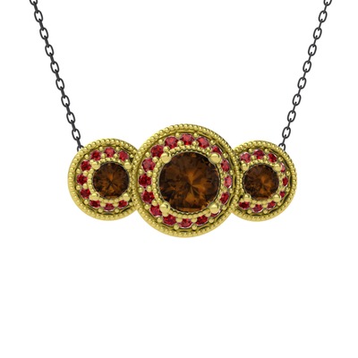 Dumanlı kuvars ve garnet 18 ayar altın kolye (40 cm gümüş rolo zincir)
