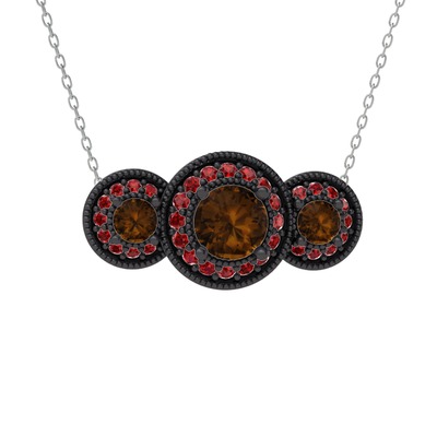 Dumanlı kuvars ve garnet 925 ayar siyah rodyum kaplama gümüş kolye (40 cm beyaz altın rolo zincir)