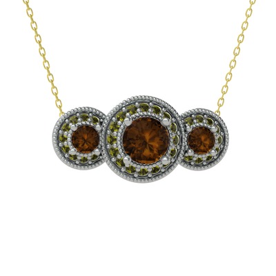 Dumanlı kuvars ve peridot 925 ayar gümüş kolye (40 cm gümüş rolo zincir)