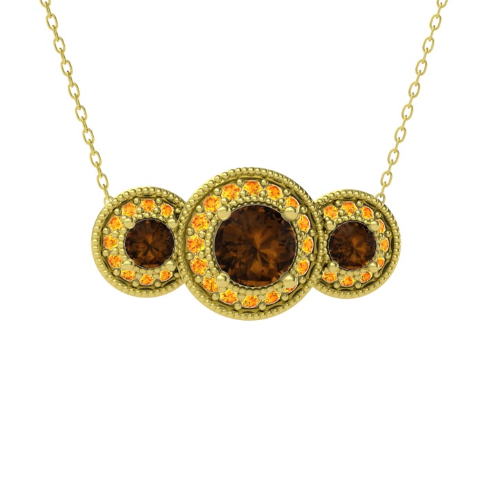 Dumanlı kuvars ve sitrin 8 ayar altın kolye (40 cm altın rolo zincir)
