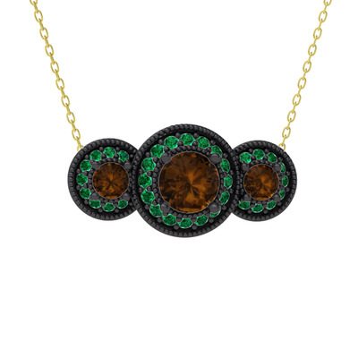 Dumanlı kuvars ve yeşil kuvars 925 ayar siyah rodyum kaplama gümüş kolye (40 cm altın rolo zincir)