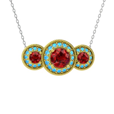 Garnet ve akuamarin 8 ayar altın kolye (40 cm beyaz altın rolo zincir)