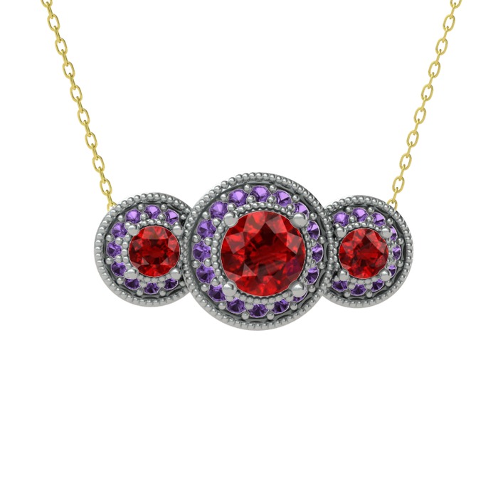 Garnet ve ametist 8 ayar beyaz altın kolye (40 cm altın rolo zincir)