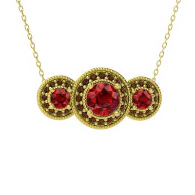 Garnet ve dumanlı kuvars 925 ayar altın kaplama gümüş kolye (40 cm altın rolo zincir)