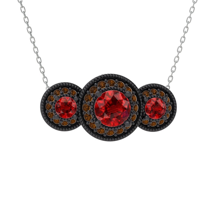 Garnet ve dumanlı kuvars 925 ayar siyah rodyum kaplama gümüş kolye (40 cm beyaz altın rolo zincir)
