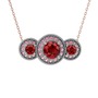 Garnet ve pembe kuvars 18 ayar beyaz altın kolye (40 cm rose altın rolo zincir)