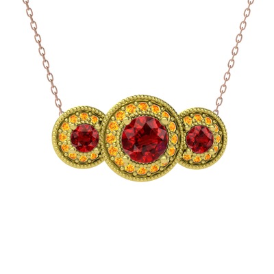 Garnet ve sitrin 14 ayar altın kolye (40 cm rose altın rolo zincir)