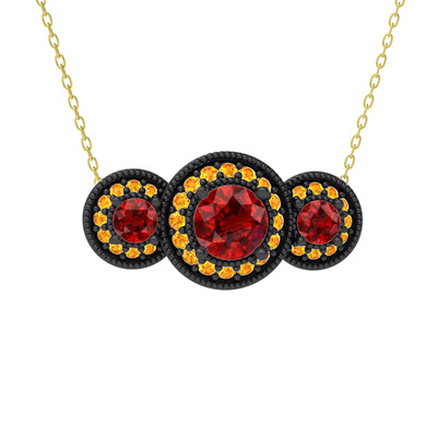 Garnet ve sitrin 925 ayar siyah rodyum kaplama gümüş kolye (40 cm altın rolo zincir)