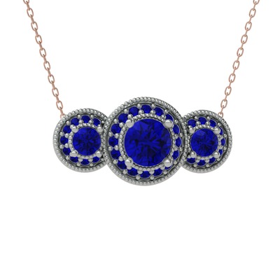 Lab safir 8 ayar beyaz altın kolye (40 cm rose altın rolo zincir)
