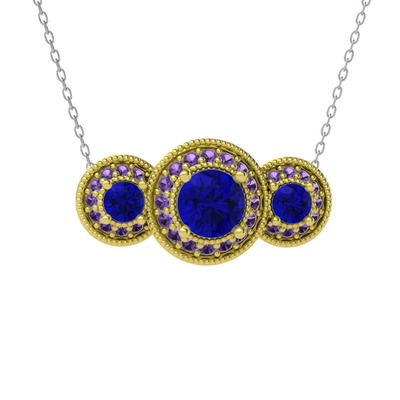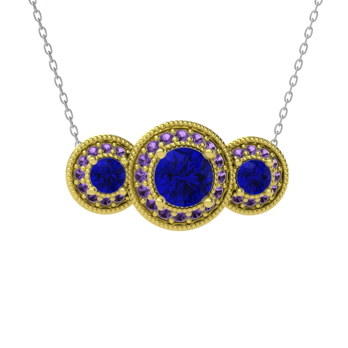 Lab safir ve ametist 8 ayar altın kolye (40 cm beyaz altın rolo zincir)