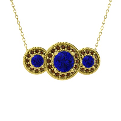 Lab safir ve dumanlı kuvars 8 ayar altın kolye (40 cm altın rolo zincir)