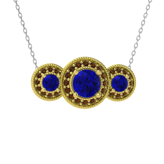 Lab safir ve dumanlı kuvars 8 ayar altın kolye (40 cm beyaz altın rolo zincir)