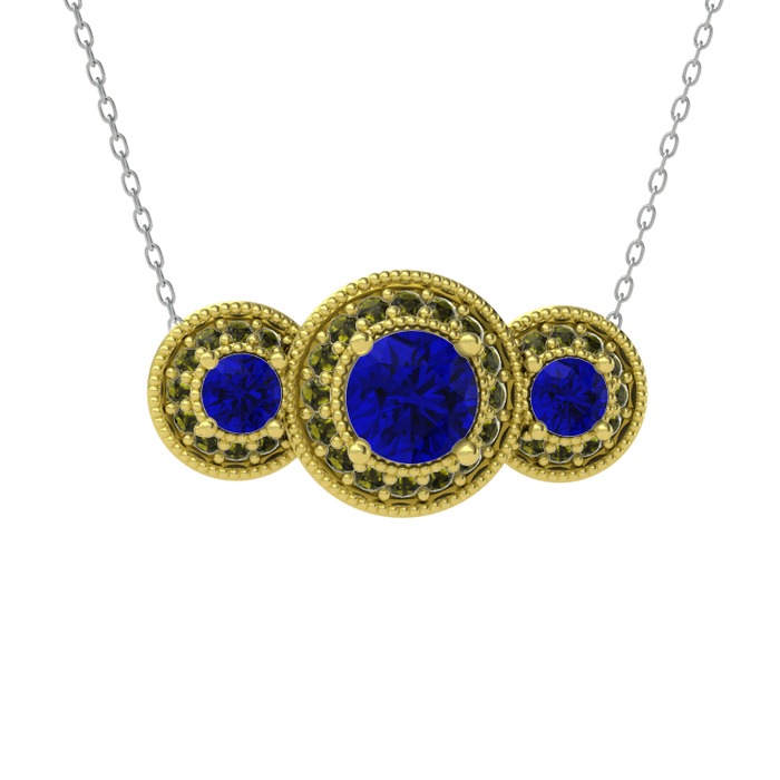 Lab safir ve peridot 925 ayar altın kaplama gümüş kolye (40 cm beyaz altın rolo zincir)
