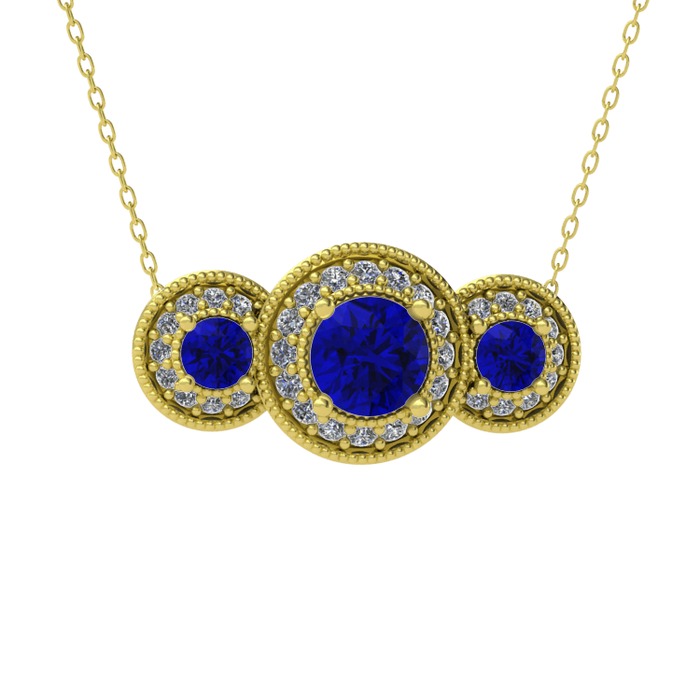 Lab safir ve pırlanta 8 ayar altın kolye (0.462 karat, 40 cm altın rolo zincir)