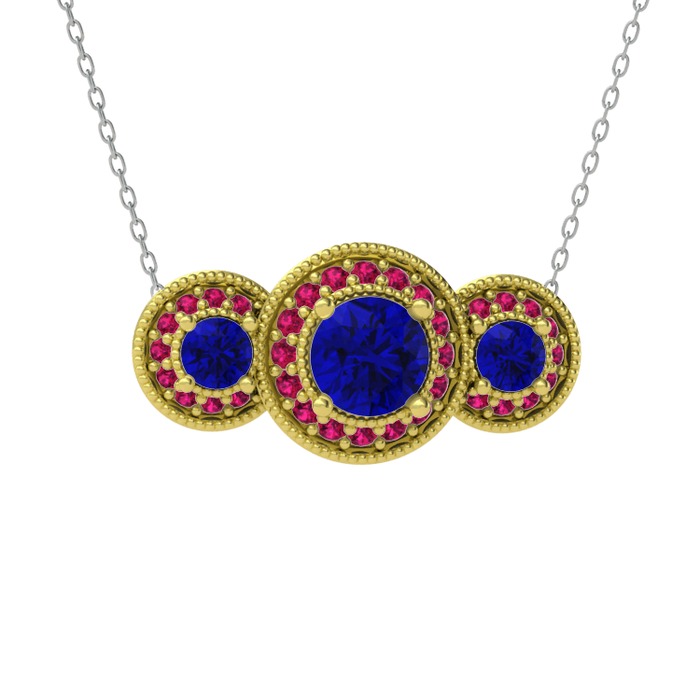 Lab safir ve rodolit garnet 8 ayar altın kolye (40 cm beyaz altın rolo zincir)