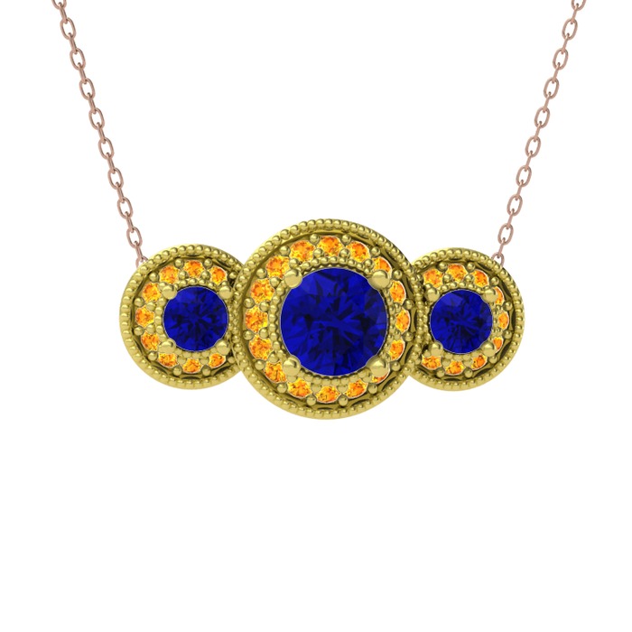Lab safir ve sitrin 18 ayar altın kolye (40 cm rose altın rolo zincir)