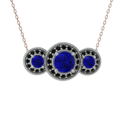 Lab safir ve siyah zirkon 18 ayar beyaz altın kolye (40 cm gümüş rolo zincir)