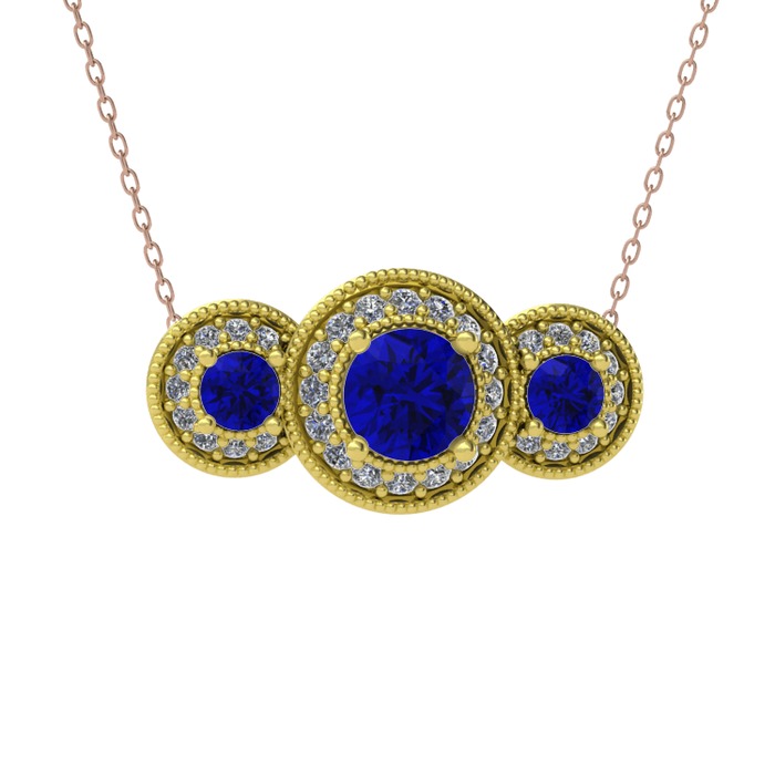 Lab safir ve swarovski 8 ayar altın kolye (40 cm rose altın rolo zincir)