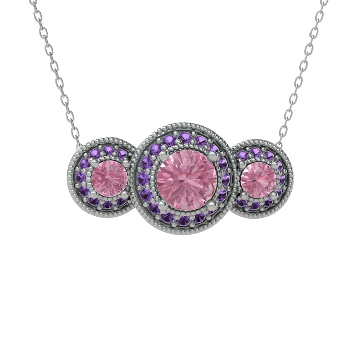 Pembe kuvars ve ametist 8 ayar beyaz altın kolye (40 cm beyaz altın rolo zincir)