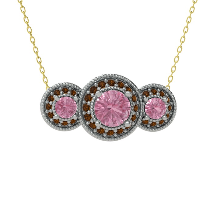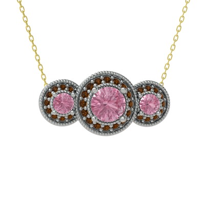 Pembe kuvars ve dumanlı kuvars 18 ayar beyaz altın kolye (40 cm gümüş rolo zincir)