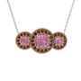 Pembe kuvars ve dumanlı kuvars 18 ayar rose altın kolye (40 cm beyaz altın rolo zincir)