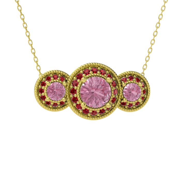 Pembe kuvars ve garnet 18 ayar altın kolye (40 cm altın rolo zincir)