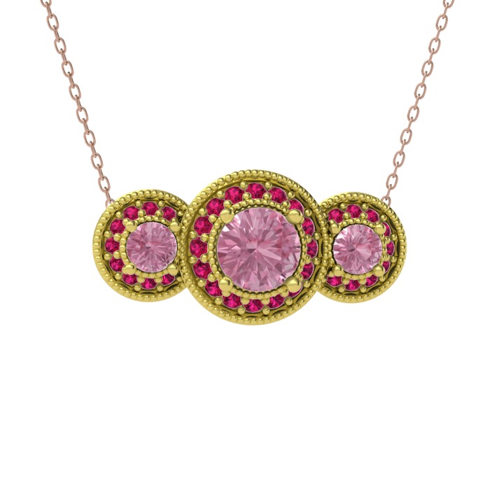Pembe kuvars ve rodolit garnet 18 ayar altın kolye (40 cm rose altın rolo zincir)