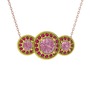 Pembe kuvars ve rodolit garnet 925 ayar altın kaplama gümüş kolye (40 cm gümüş rolo zincir)